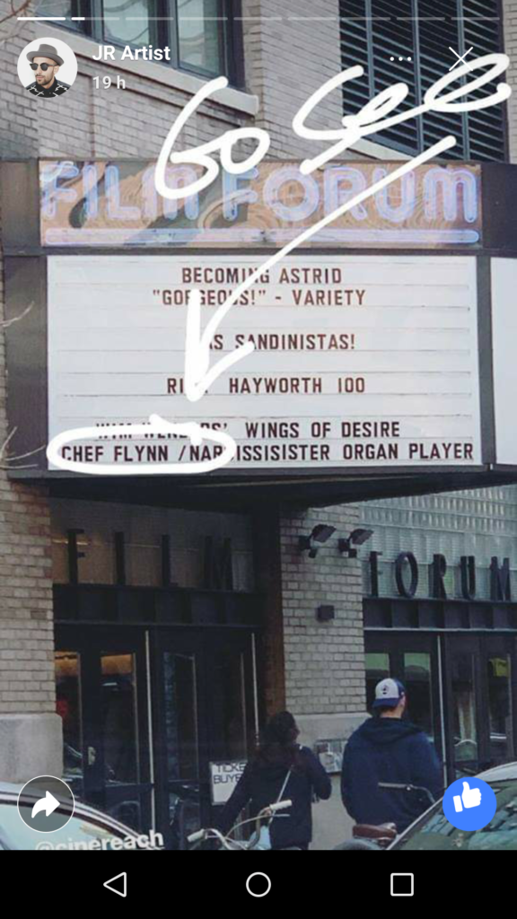Exemple ici avec des extraits d’une story réalisée par l’artiste JR, sur Facebook :